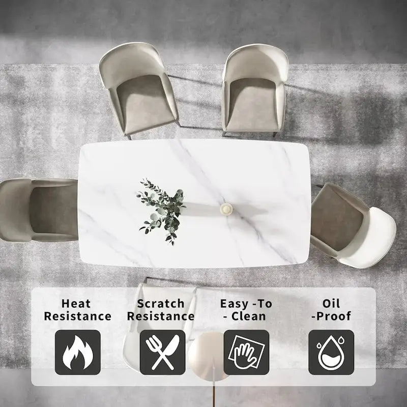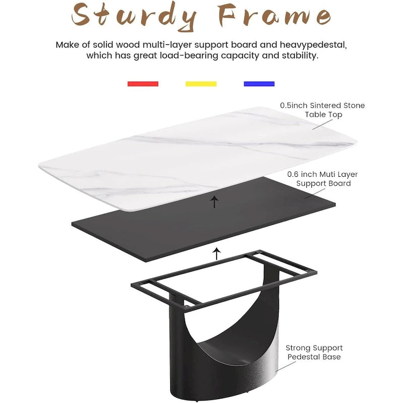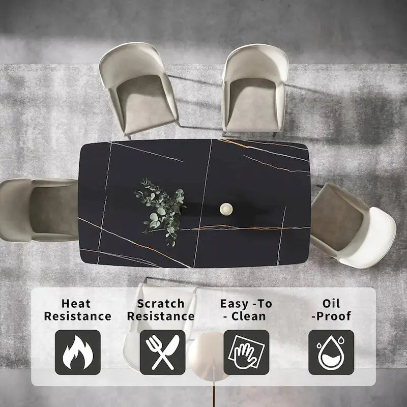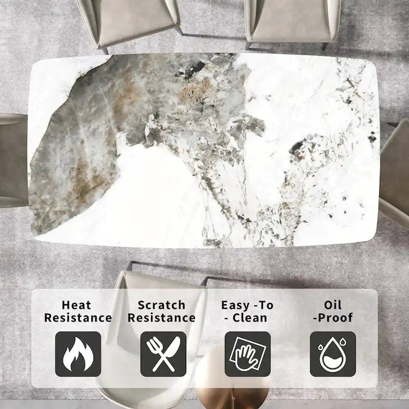 Nice AppearanceOur rectangular dining table with minimalist aesthetics design will make your house more Elegant.Whether you are hosting family gathering, office meeting or leisurely meal, this marble sintered stone dining table will meet your needs.Especially,good for home living room, studio, apartment, etc.