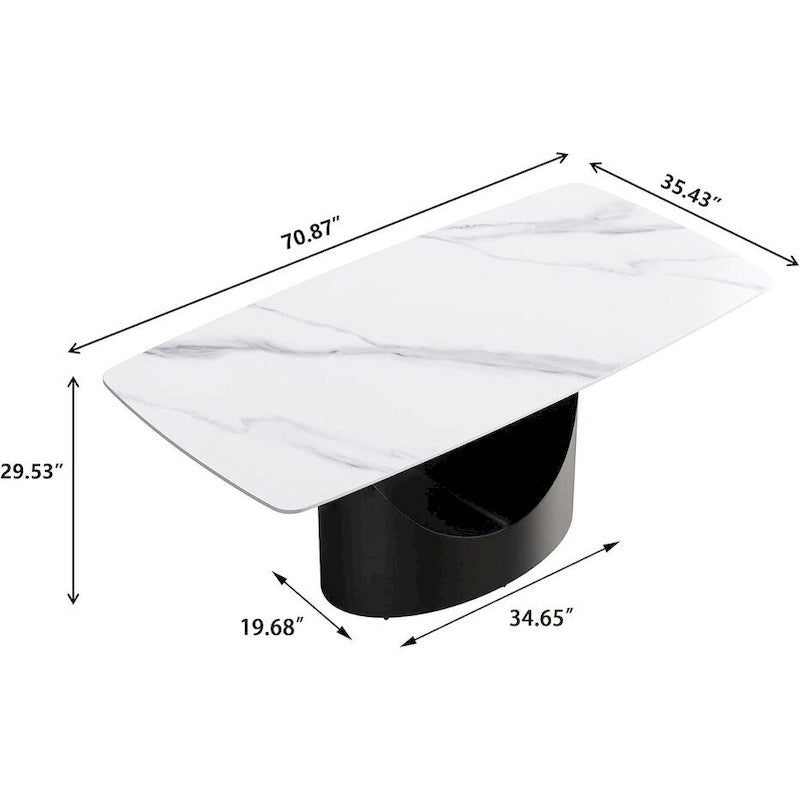 Perfect SizeThe size of the sintered stone dining table is 71w35.43D29.53H,so accommodate for 6 people is not a problem. Provide a comfortable seat height distance in daily use, you can freely and flexibly arrange your space, this dining table is designed to meet your requirements exactly.