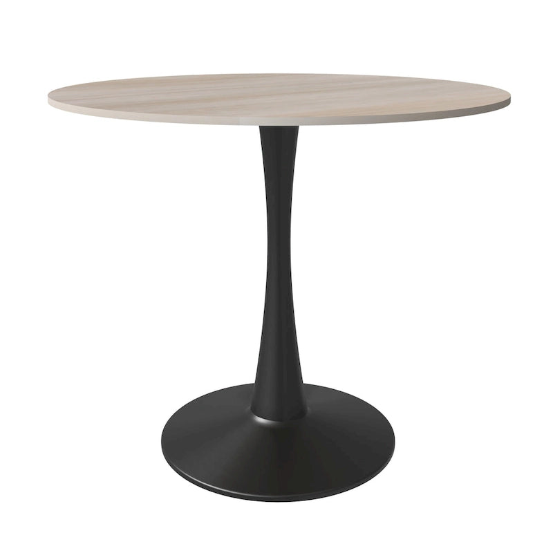 - Offering a minimalist design, the round tabletop encourages an inclusive dining atmosphere conducive to easy conversation. The base is featuring a single pedestal, offers a clean and understated appearance, optimizing legroom and seating flexibility.