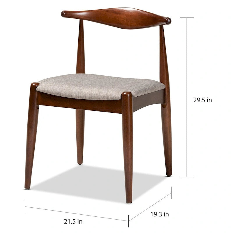 Update your dining area with this 6-piece upholstered dining set. This set has a modern style and includes one table, one bench and four chairs. Upholstered in polyester fabric, the set has tapered legs and the light grey, walnut color will easily match any existing style.