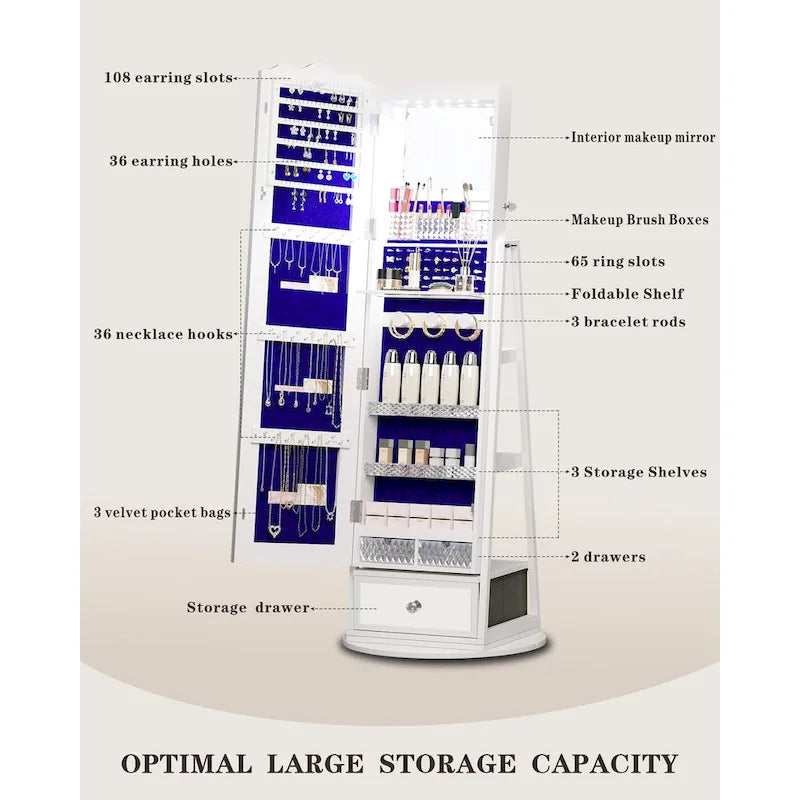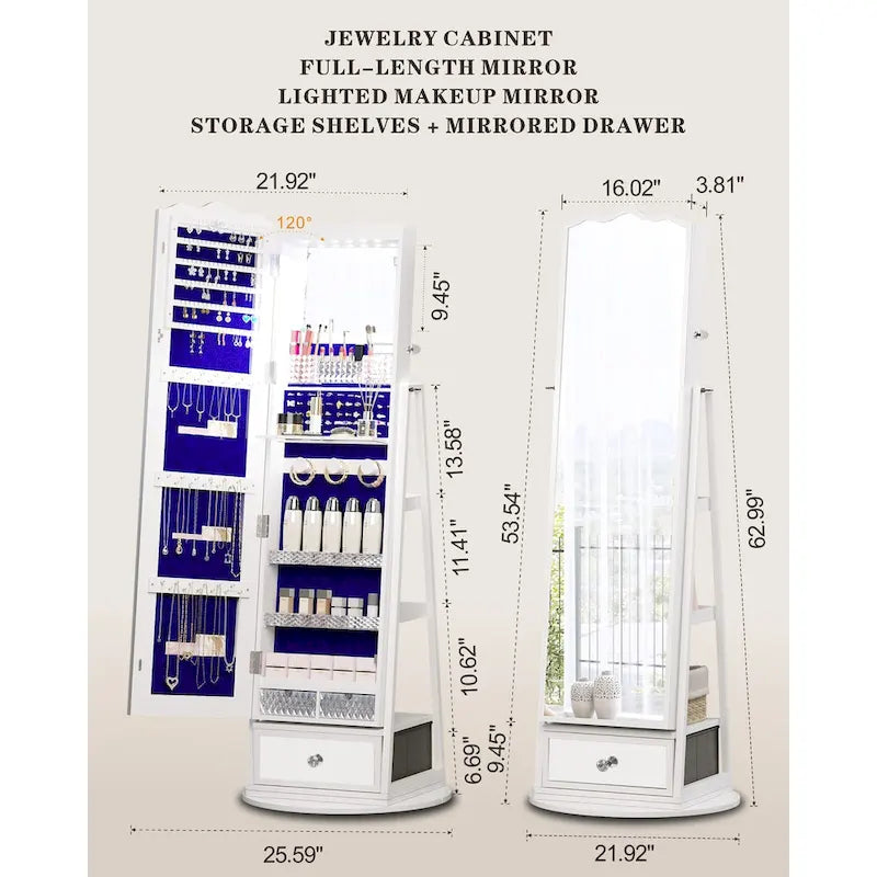 The sleek and modern design Full-Length Mirror Jewelry Cabinet seamlessly blends into any room decor. Whether it's in your bedroom, dressing area, or walk-in closet, it adds a touch of sophistication and functionality