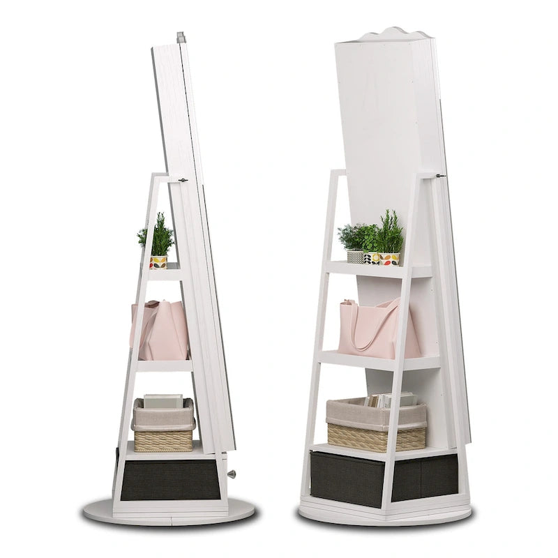 This innovative and stylish piece combines the functionality of a full-length mirror with the convenience of a jewelry cabinet and a storage shelf. It's the perfect solution for keeping your jewelry and accessories organized while providing a sleek and elegant mirror for your daily routines