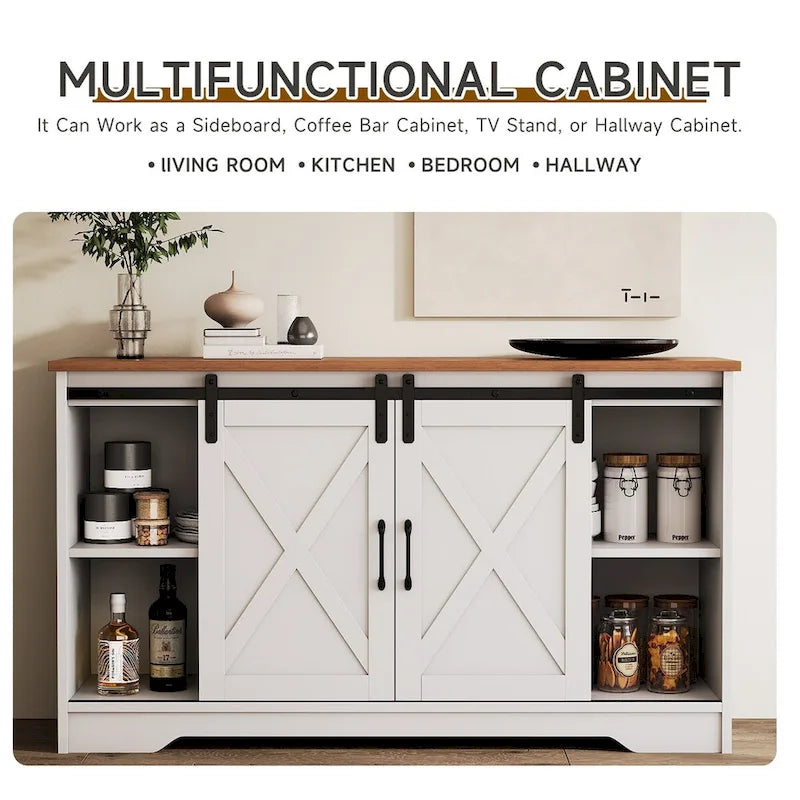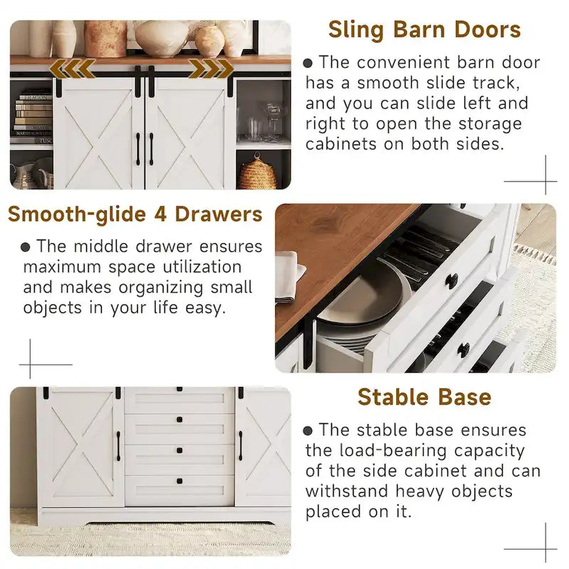 - Stunning buffet sideboard: Paired with 2 classic sliding doors and 4 functional drawers, it combines modern flair with farmhouse appeal, effortlessly complementing any home decor.