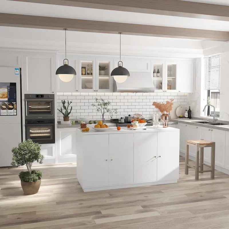 Streamlined Design: The sideboard's white finish is complemented by sleek handles, giving it a modern look that can blend with any decor.