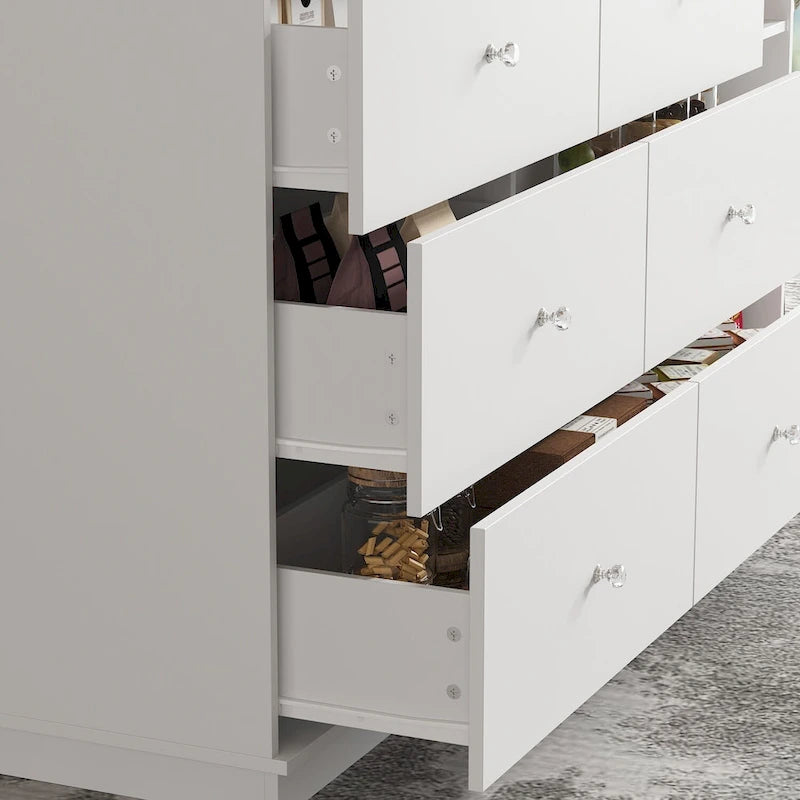 Versatile Storage Solutions: Comes with six equal-sized drawers two cabinets and three cabinet sections, each providing a generous storage space to keep your essentials organized and out of sight.