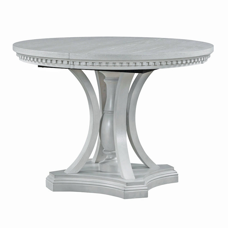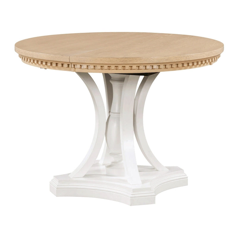 Retro-style dining set, including a round table and four chairs. Can accommodate 4 people. Perfect for the whole family to enjoy a sumptuous dinner together. With a strong farmhouse feel, this dining set creates a romantic and elegant atmosphere for your dining room. Pull the two ends of the tabletop apart along the edges, with self-contained leaves that manually slide out and unfold. The dining table is adjust from 42 to 58. You can adjust it according to your needs. In your spare time, it will also become a very exquisite decoration in your home.