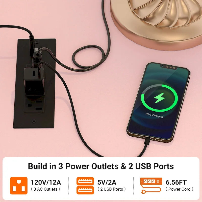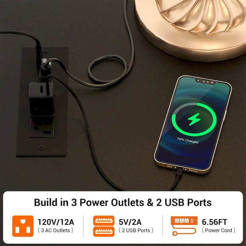 - Built-in charging station with outlets and USB ports for device charging