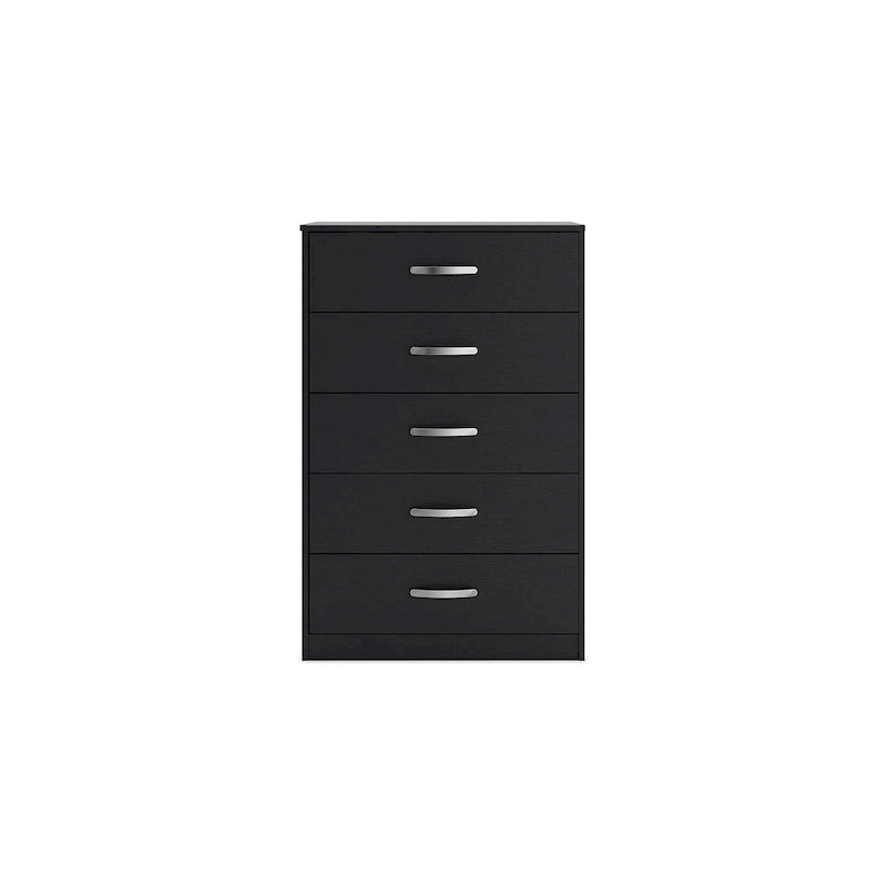 Practical and attractive, this chest of drawers blends seamlessly with modern decor and makes a smart addition to a bedroom. Five spacious drawers will keep your clothes neat and organized. Sleek metal pulls in a brushed nickel-tone finish add to the streamlined aesthetic. Combine with other pieces in the collection to create a room that's smart and stylish