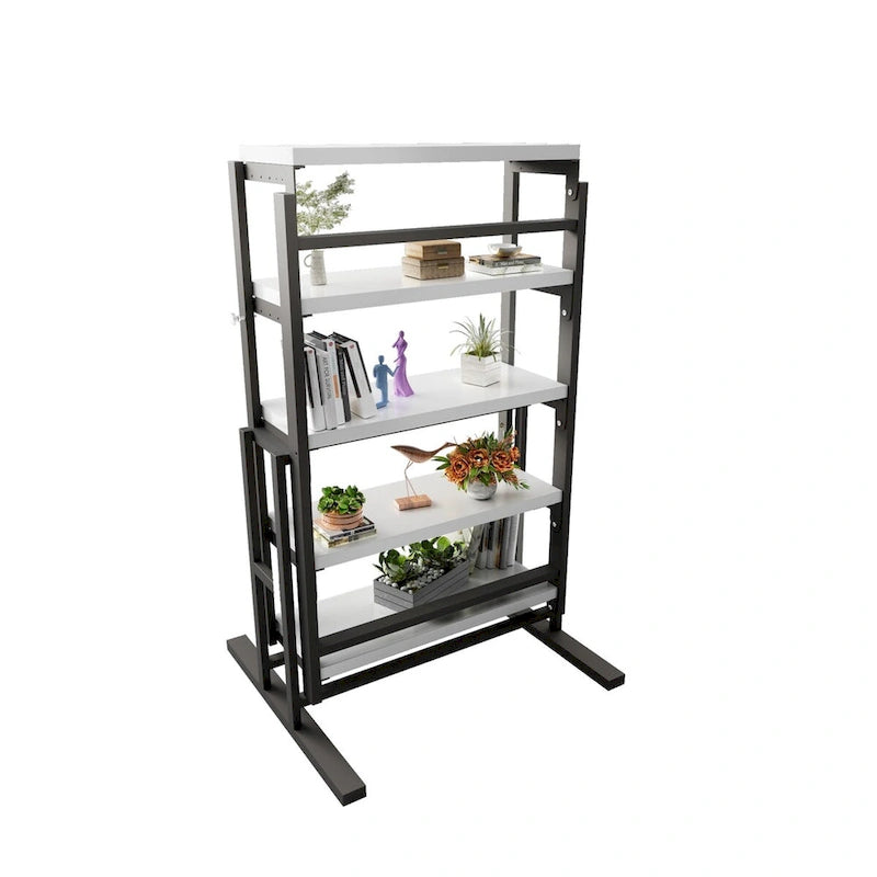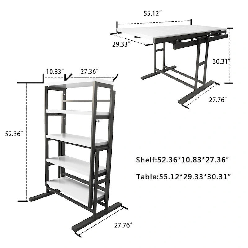 Crafted with a combination of wood and a sturdy metal frame, this furniture piece seamlessly blends durability with contemporary style. Whether you need a convenient tabletop for dining or a spacious shelf for displaying decor items, this convertible unit has got you covered.