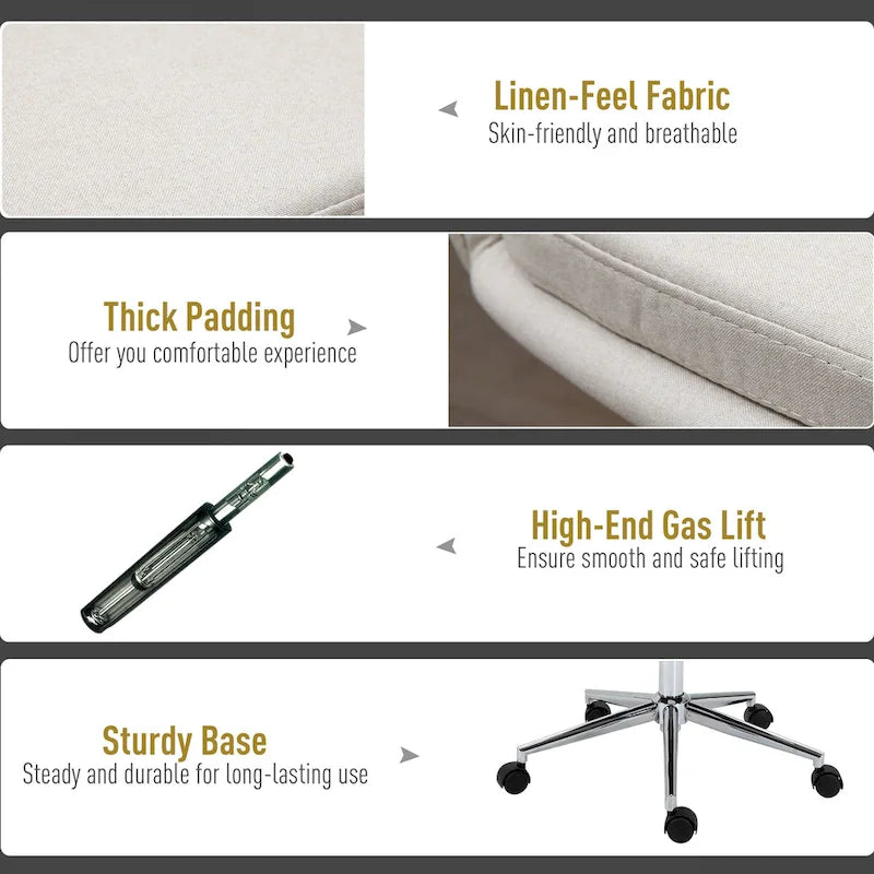 Choose this leisure style office chair for your relax or working time. You can place the PC chair in the office, bedroom, or living room. Featuring an ergonomic line design with thick padding and soft fabric, the desk chair provides extra comfort for long-period use. You can adjust the seat height to get a better sitting experience. You can quickly move with its swivel wheels and high-end gas lift. Bring style and comfort to your living space with this computer chair from.