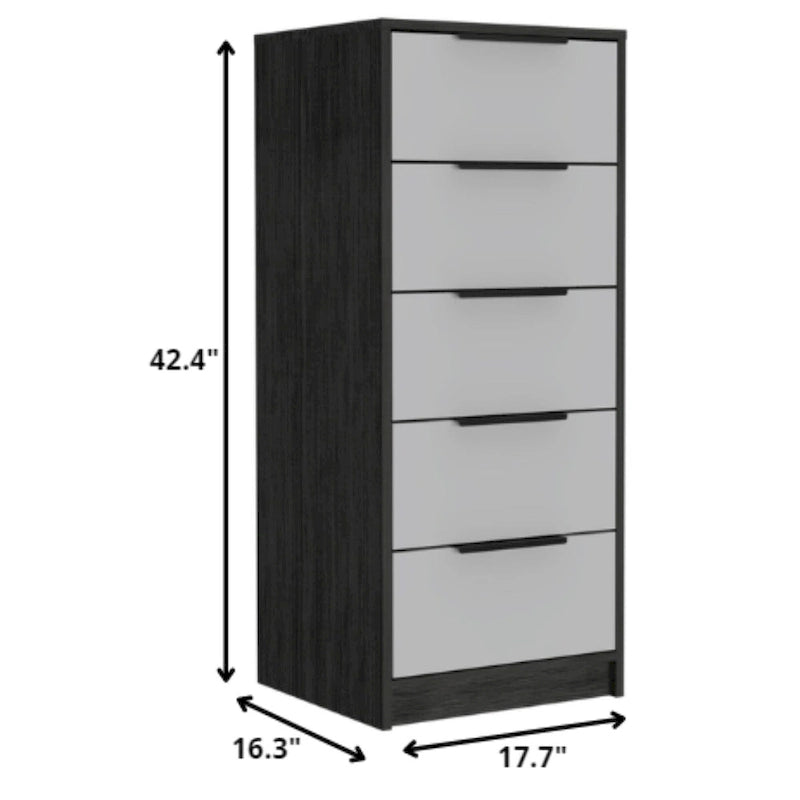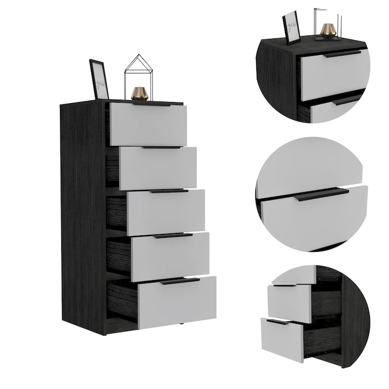 Wood Modern 5 Drawer Dresser Chest with Metal Glides and Handles